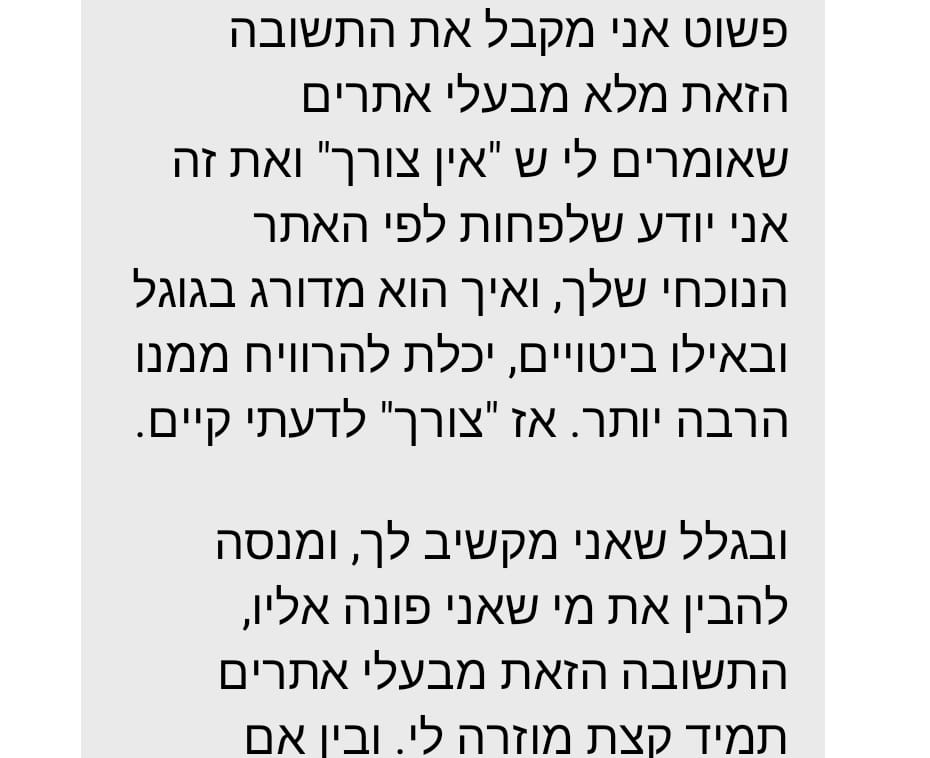 במקרה שלי למשל, הכול היה טוב, חוץ מזה שאני לא רוצה שיגיעו פניות מגוגל. פעם אגב, רציתי, לפני שהתחלתי לשווק ברשתות.